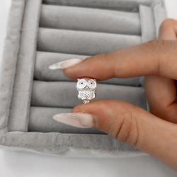 Berloque separador coruja olhos cravejados 3D 14mm | Mya Prata