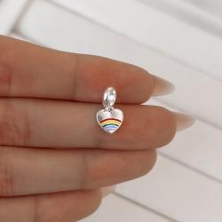 Berloque pingente coração arco-íris resina 8mm | Mya Prata