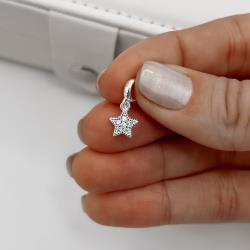 Berloque pingente estrela cravejada 8mm | Mya Prata