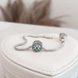 Berloque separador zircônia azul com cravejado detalhe corações vazados 12mm envelhecido | Mya Prata