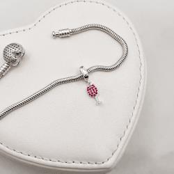 Descrição: Berloque pingente taça cravejada pink 10mm elo detalhe coração fabricado(a) em prata
