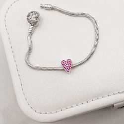 Berloque separador coração alongado cravejado pink 10mm | Mya Prata