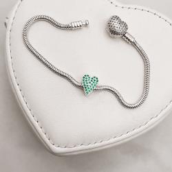 Berloque separador coração alongado cravejado verde 10mm | Mya Prata