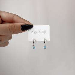 Argola click 10mm pingente zircônia 4mm azul claro | Mya Prata