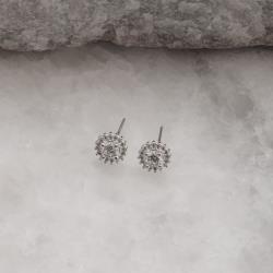 Descrição: Brinco botão cravejado 8mm fabricado(a) em prata