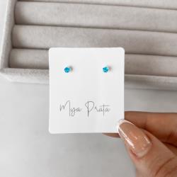 Brinco zircônia redonda azul 3mm garra | Mya Prata