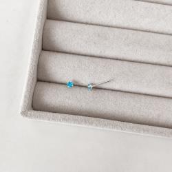 Brinco zircônia redonda azul 3mm garra