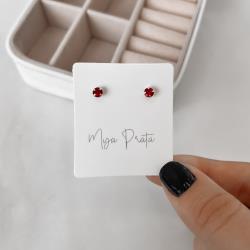 Brinco zircônia redonda vermelha 4mm | Mya Prata