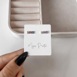 Brinco infantil escrito love cravejado colorido tarraxa comum | Mya Prata