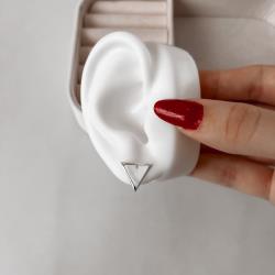Brinco triângulo invertido vazado 14mm | Mya Prata