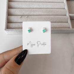 Brinco infantil urso com zircônia coração acqua 7mm tarraxa baby | Mya Prata