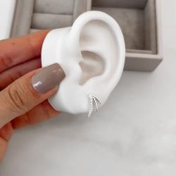 Brinco 3 fios detalhe cravejado 14mm | Mya Prata