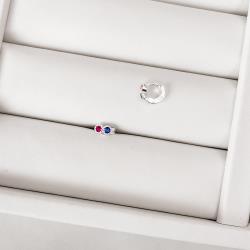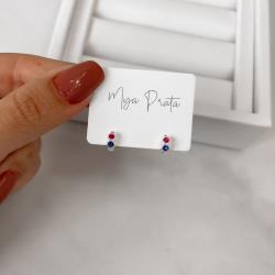 Argola click 8mm 2 zircônias rosa e azul | Mya Prata