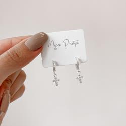 Argola click cravejada 10mm pingente cruz cravejada | Mya Prata