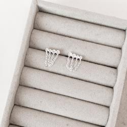 Brinco 4 zircônias com corrente 11mm | Mya Prata