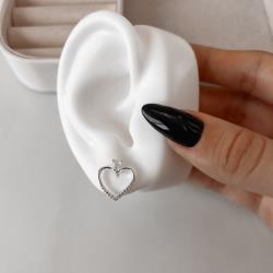 Brinco coração vazado cravejado detalhe zircônia gota 15mm