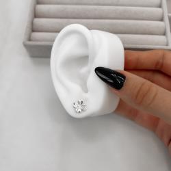 Brinco trevo detalhe cravejado 10mm | Mya Prata