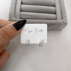 Brinco meia argola zircônias retangulares 12mm tarraxa | Mya Prata