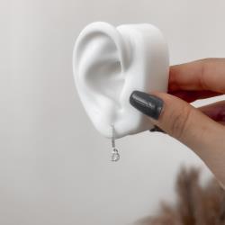 Argola click cravejada 14mm pingente letra D | Mya Prata