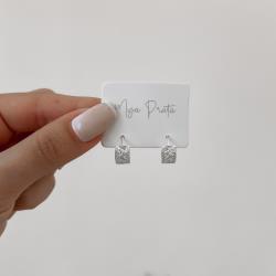 Argola click 12mm retângulo zigzag cravejado | Mya Prata