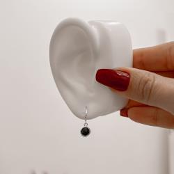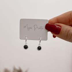 Argola 10mm pingente pedra ônix tarraxa | Mya Prata
