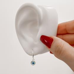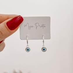 Argola 12mm pingente olho grego madrepérola tarraxa | Mya Prata