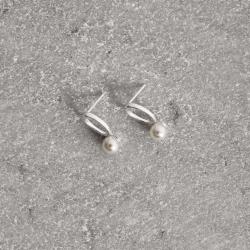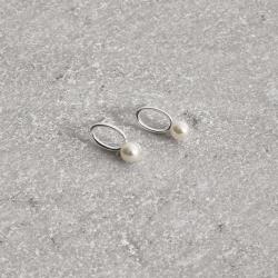 Brinco oval vazado com pérola 17mm | Mya Prata