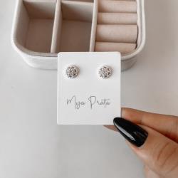 Brinco flor cravejada com bolinhas 8mm | Mya Prata