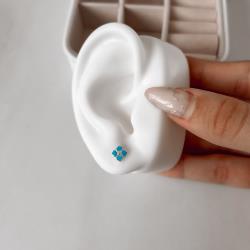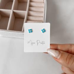 Brinco infantil flor resina azul 7mm tarraxa baby | Mya Prata