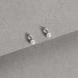 Brinco zircônia e pérola 9mm | Mya Prata