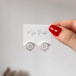 Argola click 14mm botão cravejado trabalhado | Mya Prata