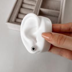 Brinco zircônia redonda ônix com cravejado 9mm