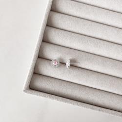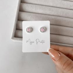 Brinco zircônia redonda rosa com cravejado 9mm | Mya Prata
