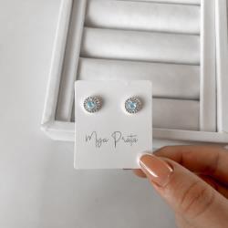 Brinco zircônia redonda azul claro com cravejado 9mm | Mya Prata