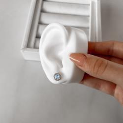 Brinco zircônia redonda azul claro com cravejado 9mm