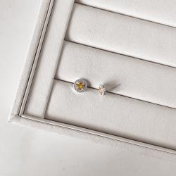 Brinco zircônia redonda amarela com cravejado 9mm | Mya Prata