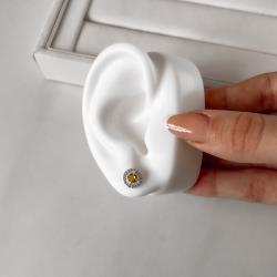 Brinco zircônia redonda amarela com cravejado 9mm