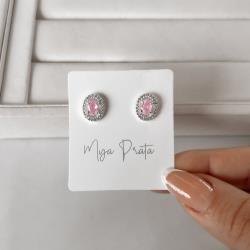 Brinco zircônia oval rosa com cravejado 11mm | Mya Prata