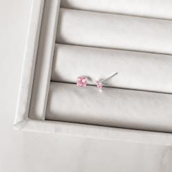 Brinco zircônia quadrada rosa 6mm | Mya Prata