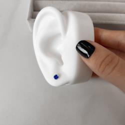 Brinco zircônia redonda azul bic 4mm | Mya Prata
