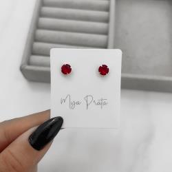Brinco zircônia redonda vermelho 6mm | Mya Prata