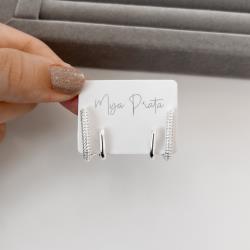 Brinco 2 fios assimétricos liso e cravejado 22mm | Mya Prata
