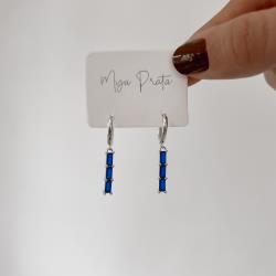 Argola click 12mm pingente zircônias retangulares azul bic | Mya Prata