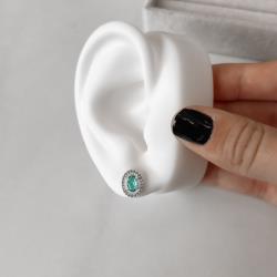 Brinco zircônia oval acqua com cravejado 11mm | Mya Prata