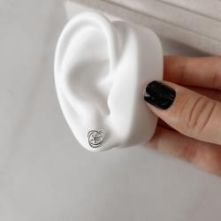 Brinco 3 elos trançados com flor cravejada 9mm