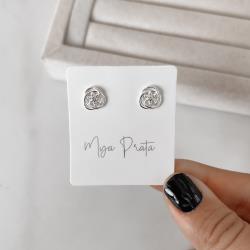 Brinco 3 elos trançados com flor cravejada 9mm | Mya Prata