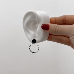 Brinco base círculo ônix resina com pingente círculo vazado ondulado 20mm | Mya Prata