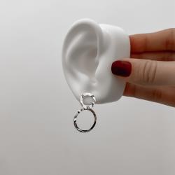 Brinco base círculo vazado ondulado com pingente 32mm | Mya Prata