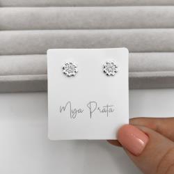 Brinco flor vazada cravejada 8mm | Mya Prata
