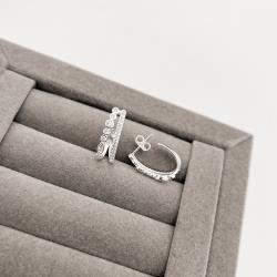 Argola oval 2 fios com zircônias 18mm tarraxa | Mya Prata